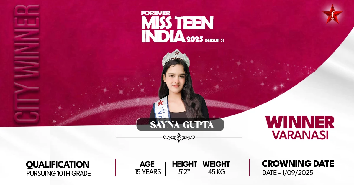 The choice to participate in Forever Miss Teen India 2025 and her eventual win are a turning point in her life. Not only a crown, but the sign of her persistence, her faith in self-expression, and her unwillingness to allow age or constraints to prevent her from having big dreams. The path that Sayna follows represents the spirit of grace, determination, and inspiration as she proudly represents Varanasi. She believes the Miss Teen Varanasi 2025 is the start of a larger mission, one where she hopes to become a successful model and inspire thousands of young people to pursue their passions without fear.
