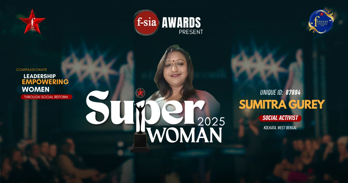 Sumitra Gurey, an inspiring Social Activist from Kolkata, is recognized for her extraordinary dedication toward women empowerment, tribal education, and environmental welfare. She currently serves as a Swimming Coach at Delhi Public School, Newtown, while actively operating as the Joint Secretary of Poribes Foundation, a Kolkata-based NGO working for public welfare. Her humanitarian initiatives and impactful leadership have earned her the prestigious Super Woman 2025 honor in the Social Activist category at Forever Star India Awards. She stands as a strong icon of courage, empathy, and community transformation.