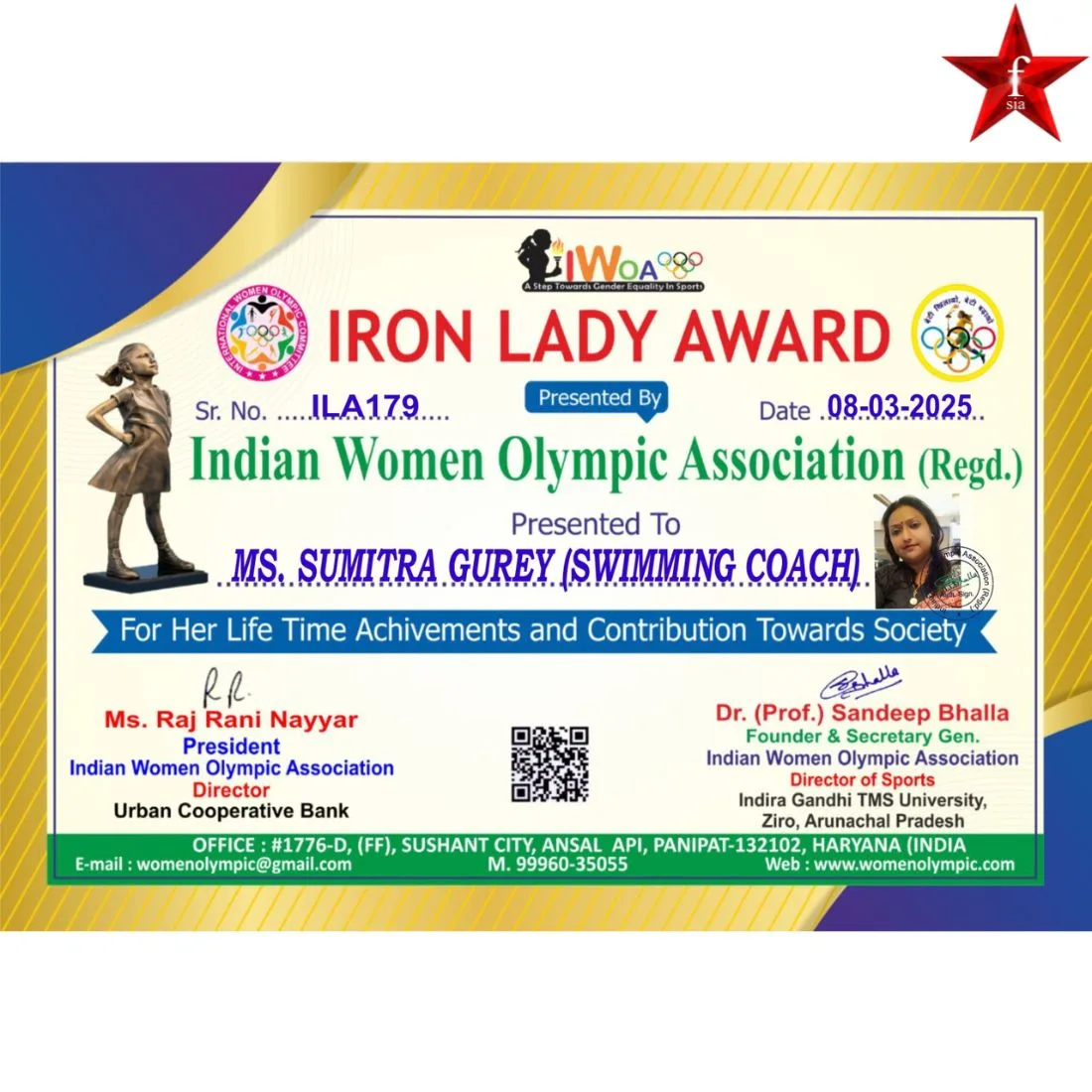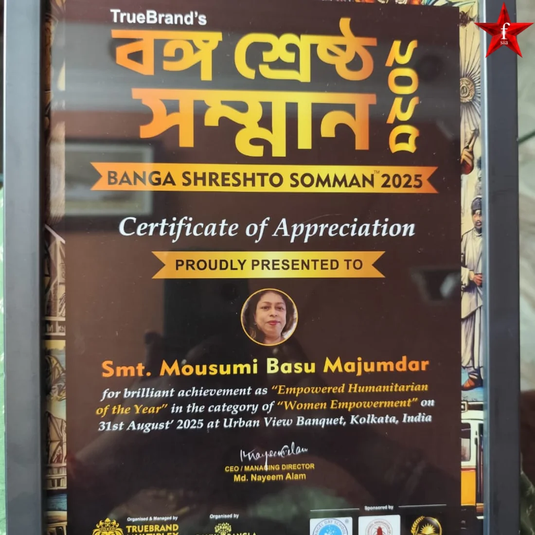 Her dedicated work has earned her the Bijaya Sarbajaya Award, along with widespread respect and industry recognition. Today, she continues to be celebrated as an Achiever in Social Activist Category from Kolkata, and a role model for youth, women, and changemakers across India.
