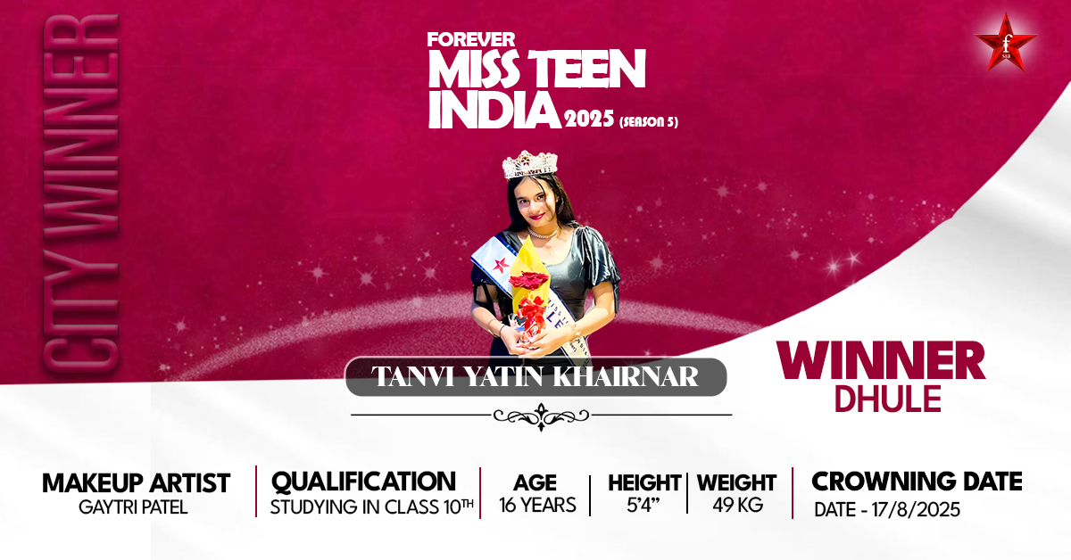 Since childhood, Miss Teen Dhule 2025 winner Tanvi Yatin Khairnar has been interested in the world of art and dance. In each drawing and each dance she was doing, she found the pleasure of expressing herself through creativity. She had always aspired to perform on a larger scale, and FSIA gave her a chance to do so, and that too with a lot of success. Her family and teachers inspired her to jump into the world of pageants.